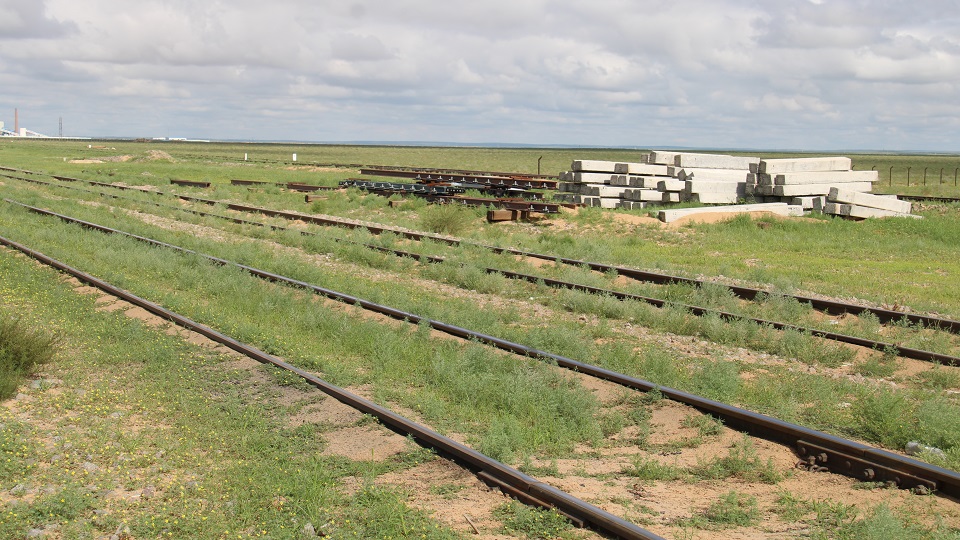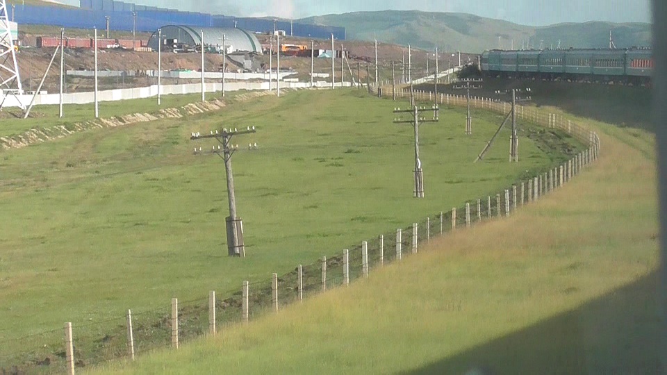 モンゴルの鉄道は軌間(2本のレールの間隔)1520mm、中国は1435mm、中国に入って最初の駅、二連浩特までは1520mmなのでモンゴルからの列車はそのまま国境を越えてゆく。旅客列車は二連浩特駅で台車交換、北京、呼和浩特方面に向かい、貨物列車は積荷を中国の貨車に積み替える。