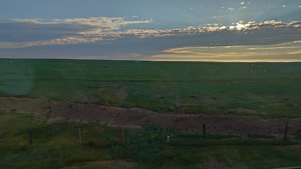 16:20、列車は定刻通りウランバートルを発車、次の駅アムガランに停車した後は、ウランバートルから南東へ250km離れたチョイルまで列車は停車しない。私たち一行のガイドさんの話ではこの列車は特急だそうである。チョイル到着は22:00前で15分ほど停車するので、客車から降りて体を伸ばす人、タバコを吸う人もけっこういる。私と息子が乗っていたのは4人用コンパートメントだったので、チョイルから乗ってきた2人のモンゴル男性客と同室になった。