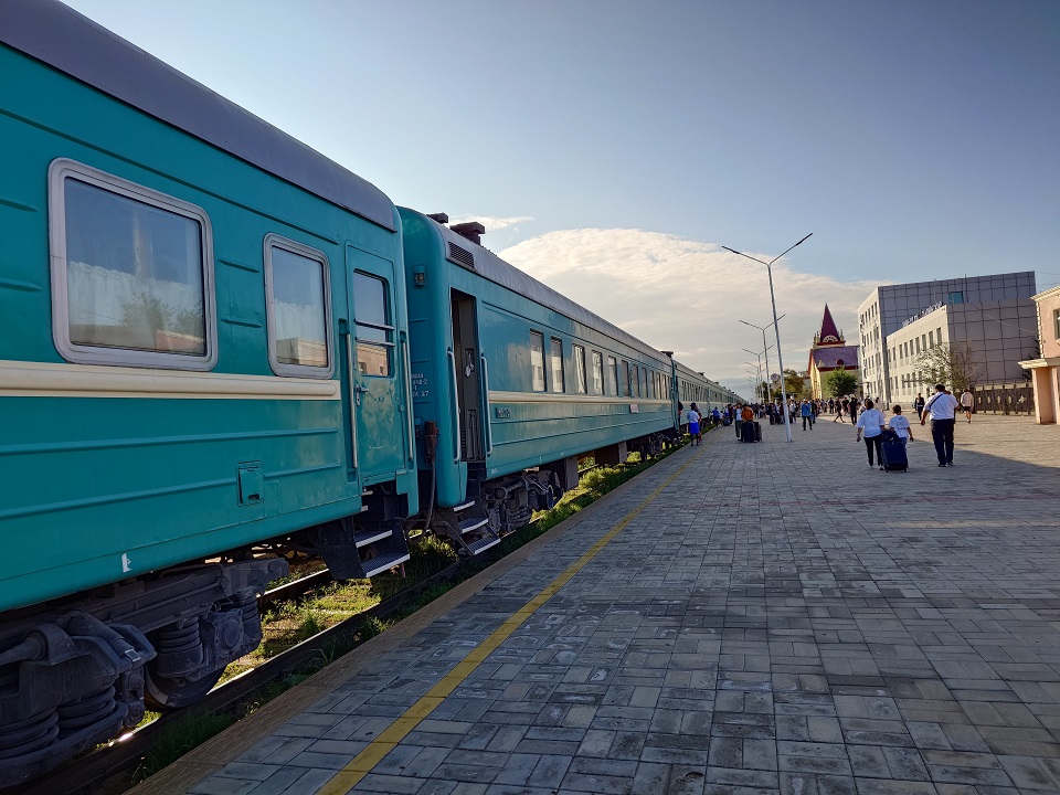 チョイル駅に停車中のザミンウッド行寝台特急列車